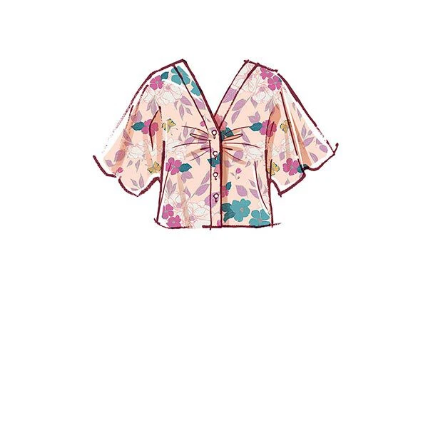 Misses’ V-neck dolman blouses. Multiple lengths & sleeves. D: mask with elastic.