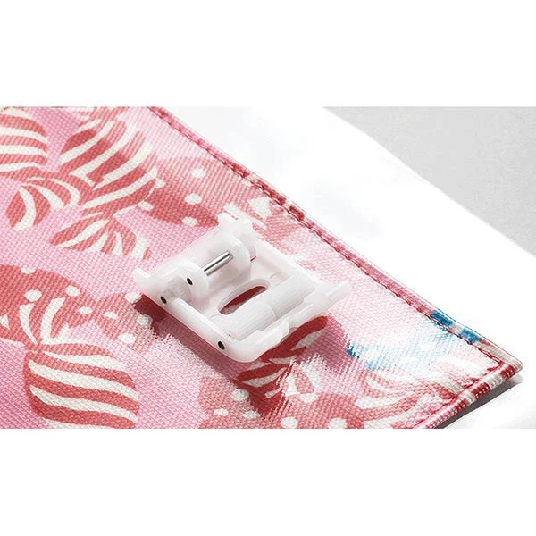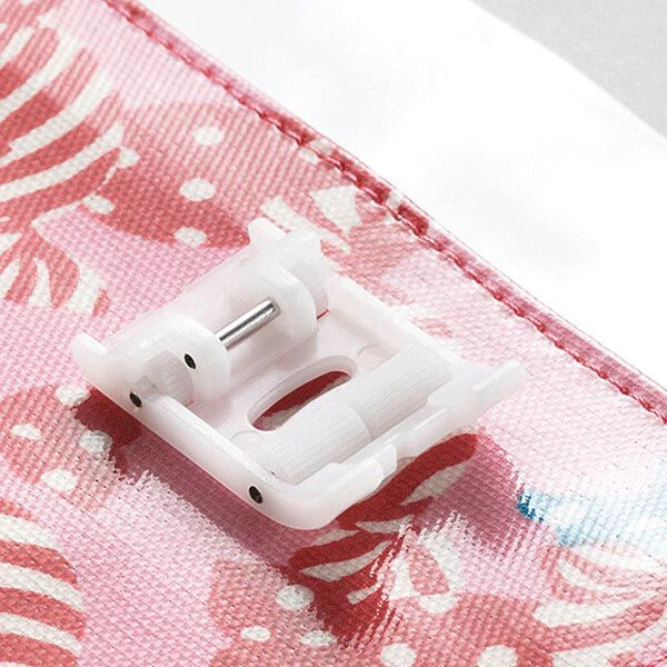This roller foot is useful when sewing leather, vinyl, velvet and stretchy fabrics. The double rollers on the non-stick roller foot hold the layers of fabric securely and enable an even fabric feed as well as precise stitching.