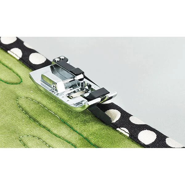 This stitch in the ditch foot is suitable for quilting and stitching over an existing seam. The long guide enables precise sewing and positioning of the existing line of stitching.