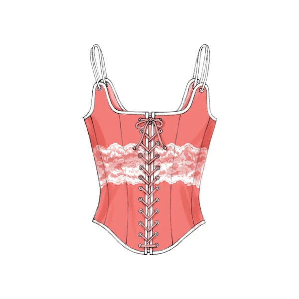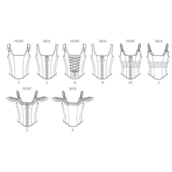 Boned Corsets with Lacing and Ruffle Variations