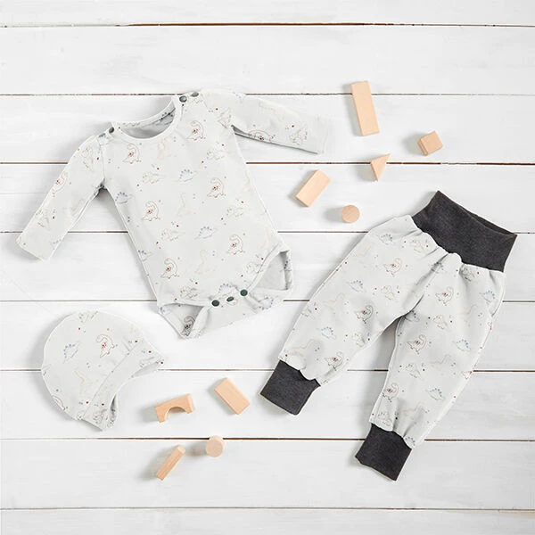 Cotton Jersey Baby Dinosaurs– Offwhite
