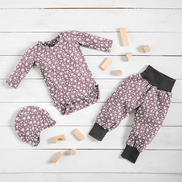 Cotton Jersey Bi-colour Flowers– Dark Dusky Pink