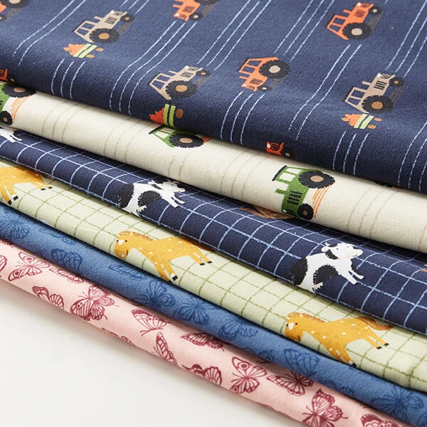 This amazing cotton jersey with wonderful kids’ motif features a pleasantly smooth hand. This fabric is stretchy and skin-friendly – which all adds up to your little ones being as cosy as can be.