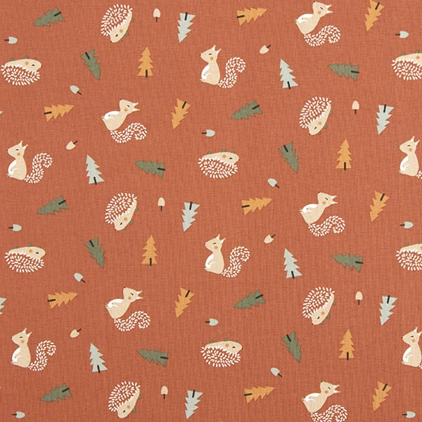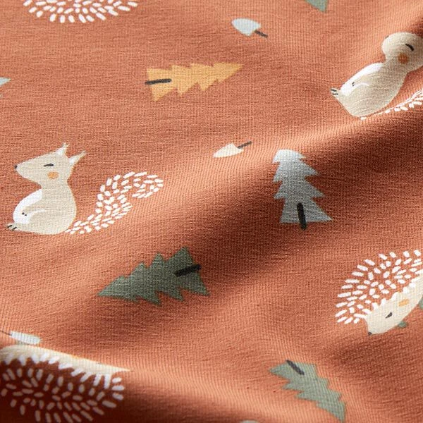 Cotton Jersey Hedgehog And Squirrel – Terracotta
