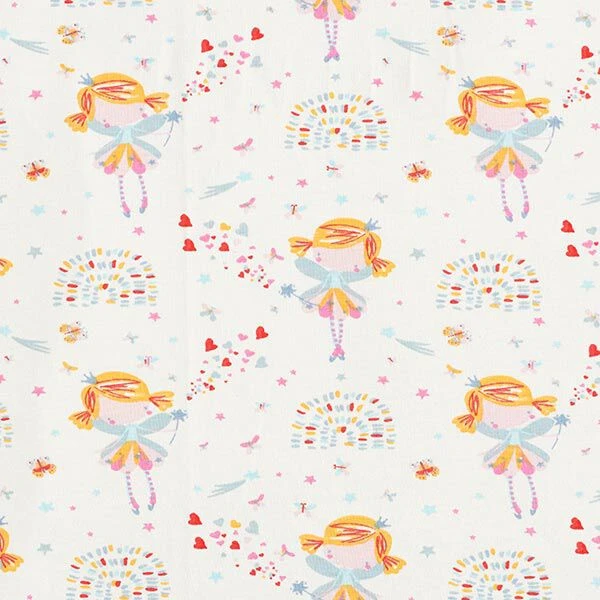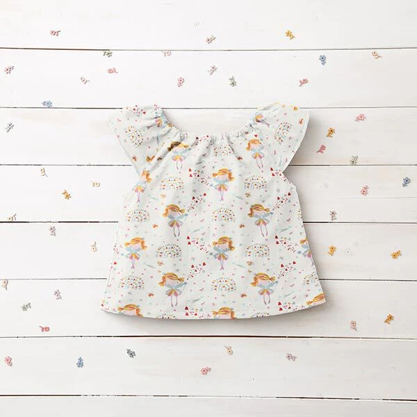This amazing cotton jersey with wonderful kids’ motif features a pleasantly smooth hand. This fabric is stretchy and skin-friendly – which all adds up to your little ones being as cosy as can be.
