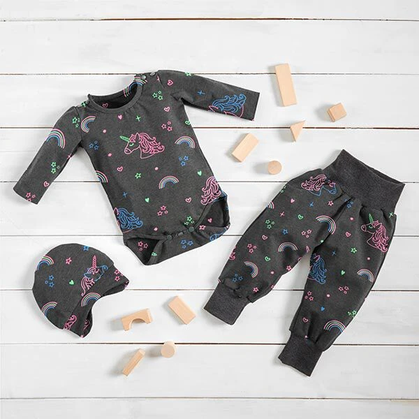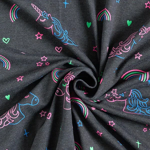This amazing cotton jersey with wonderful kids’ motif features a pleasantly smooth hand. This fabric is stretchy and skin-friendly – which all adds up to your little ones being as cosy as can be.