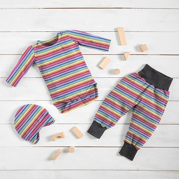 This amazing cotton jersey with wonderful kids’ motif features a pleasantly smooth hand. This fabric is stretchy and skin-friendly – which all adds up to your little ones being as cosy as can be.