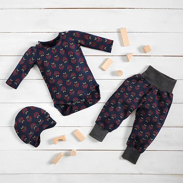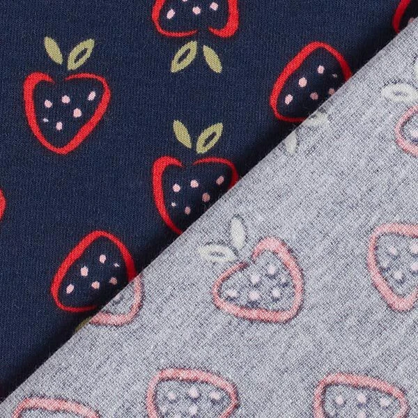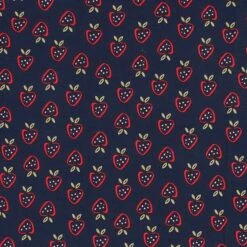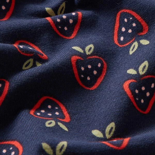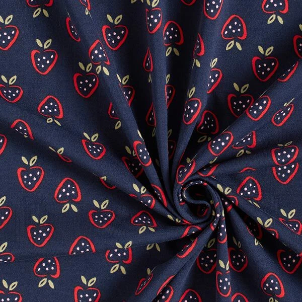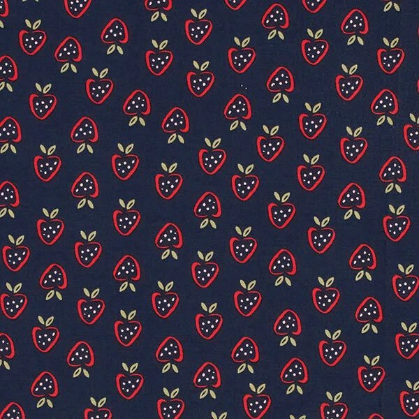 Cotton Jersey Stylised Strawberries – Navy Blue/fire Red