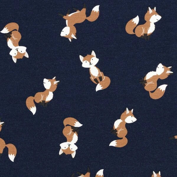 Cotton Jersey Sweet Foxes – Midnight Blue