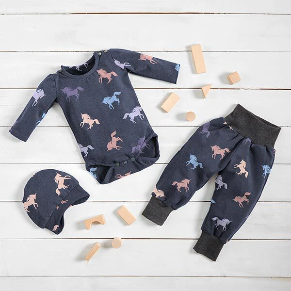 This amazing cotton jersey with wonderful kids’ motif features a pleasantly smooth hand. This fabric is stretchy and skin-friendly – which all adds up to your little ones being as cosy as can be.