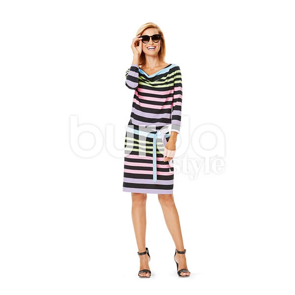 This is the ideal jersey dress for women who prefer a looser fit. A softly draped waterfall neckline and drawstring casing to adjust the waist of this distinctive dress create a less figure fitting silhouette. Added advantage: It’s a great project for beginning sewers!