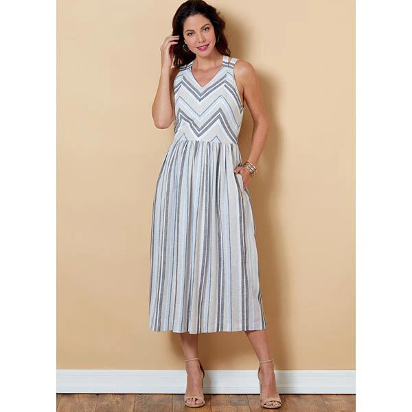 Semi-fitted tops have invisible back zipper with hook and eye and neckline, sleeve and peplum variations. A: Cut on bias, puchased bias tape for armholes. B, C: Sleeve flounce with very narrow hem.