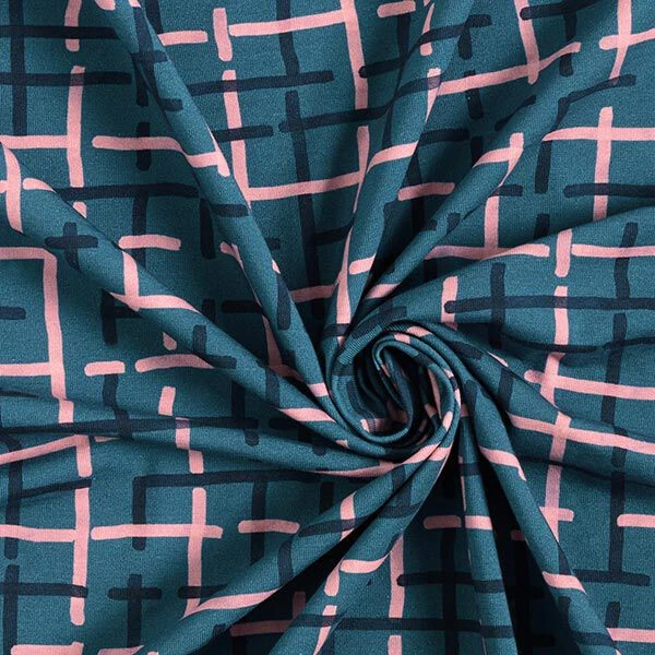 GOTS Cotton Jersey Checks | Tula – Light Petrol