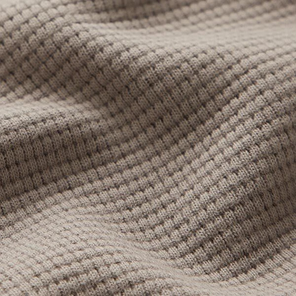This beautiful jersey fabric has a great waffle texture and is wonderfully lightweight. It’s a comfortable companion, as it is stretchy, has a soft wonderfully soft drape and is especially stylish as a crop top or long-sleeved top.