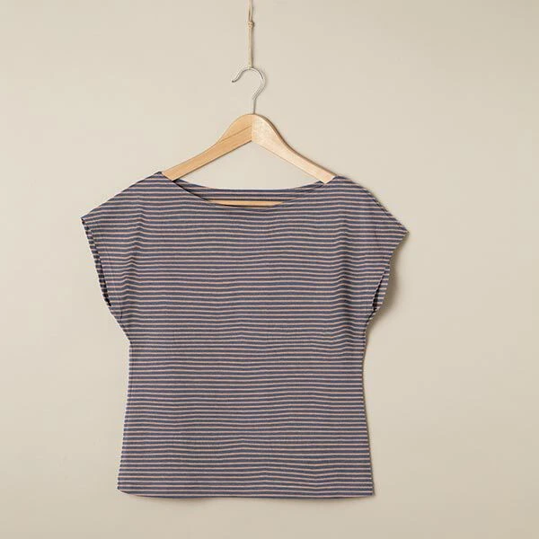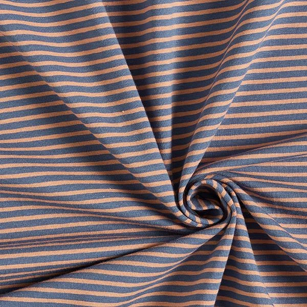 Narrow Stripes Cotton Jersey – Copper/denim Blue