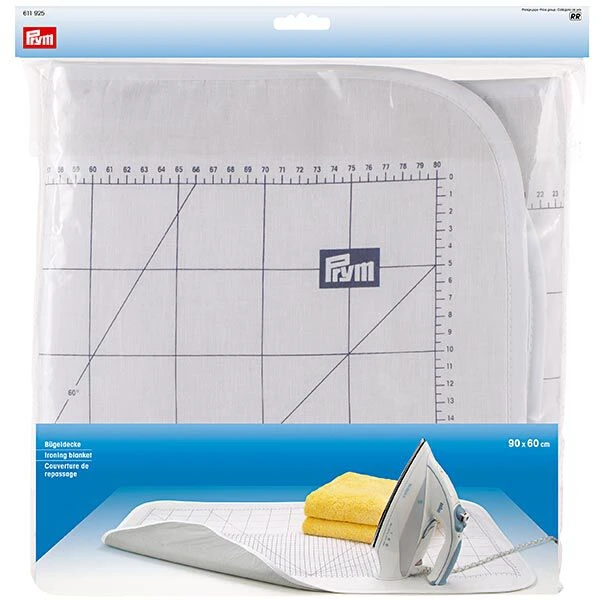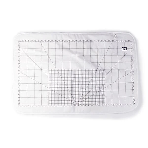 Both sides of this large cloth can be used. The white side features a metric grid for pressing, while the silver side provides a heat reflective surface for high-temperature ironing.