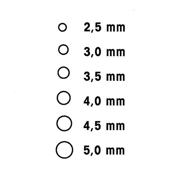 High-quality punch pliers with a revolving head and an ergonomic handle from Prym. For leather, fabric, felt, paper, card and foil. Hole diameter: 2.5 | 3.0 | 3.5 | 4.0 | 4.5 | 5.0mm Length: 21.5cm