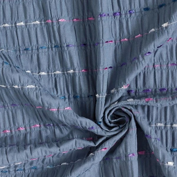 Seersucker fabric stands out due to its wrinkled finish. The crinkled look of this crepe weave gives your fabric a special texture.