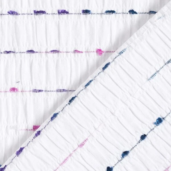 Seersucker fabric stands out due to its wrinkled finish. The crinkled look of this crepe weave gives your fabric a special texture.