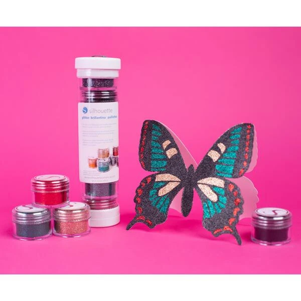 This starter kit contains everything you need to create unique designs with double-sided adhesive paper. This means you can create unusual and beautifully decorated cards, photo books or frames for your favourite pictures. For use with a Silhouette cutting machine.