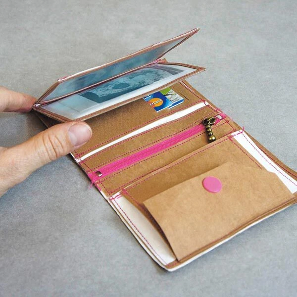 SnapPap is the amazing, new paper in a deceptively realistic leather look: It’s currently the talk of the sewing and DIY scene! It tolerates high temperatures, the only effect being that it creases slightly more than usual, and leaves no fibrous residue. You can make it smooth again by moistening the material and then steam-ironing it at a high temperature setting. SnapPap does not contain PVC or BPA, is food-safe and is a great material for lunchbags, for instance. Because of its harmless composition, SnapPap is also a brilliant craft material for children.