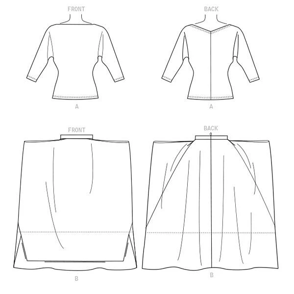 Recommended fabrics: A: Two-way Stretch Knits 50% Cross Grain): Cotton/Spandex, Stretch Lace, Sequin Mesh. B: Silk Satin, Cotton Poplin, Linen, Taffeta.