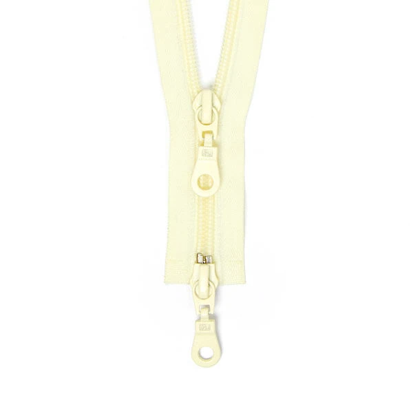 This two-way special zip for knits features loosely knit tape that you can easily sew or knit onto your knitted garment.