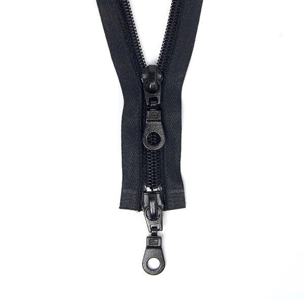 This two-way special zip for knits features loosely knit tape that you can easily sew or knit onto your knitted garment.