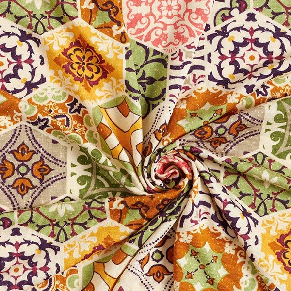 Viscose Jersey Boho Tiles – Natural/green