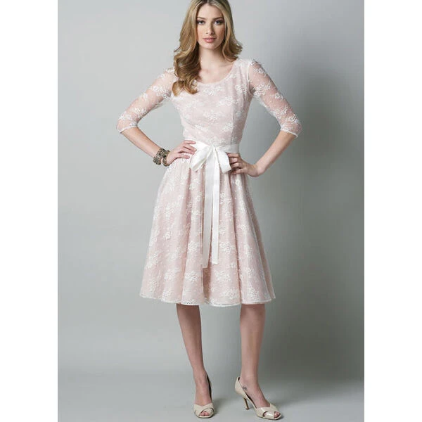 Notions: A,B,C: 14″ Zipper, One Hook & Eye, 1/2 yd. of 1/4″ Covered Boning. D,E,F: 20″ Zipper, One Hook & Eye. D: One Purchased Belt. C,F: 3 yds. of 11/2″ Ribbon.