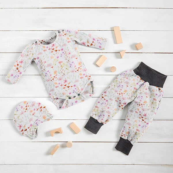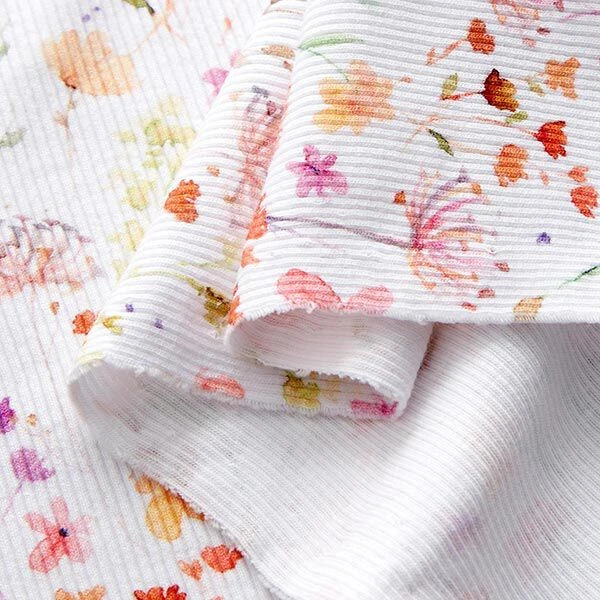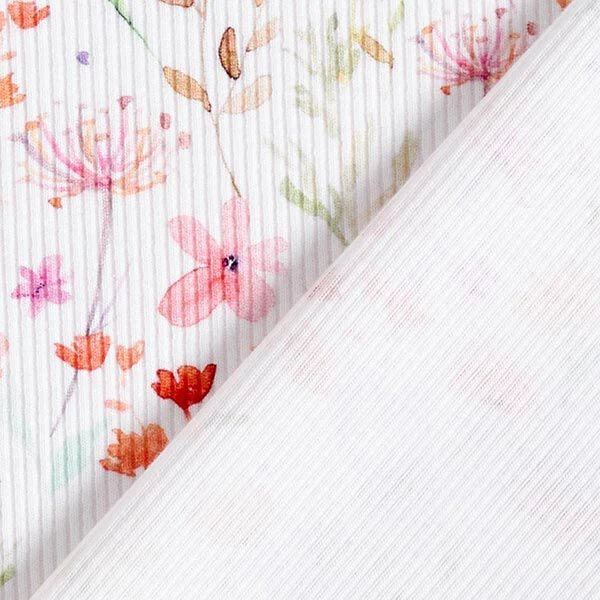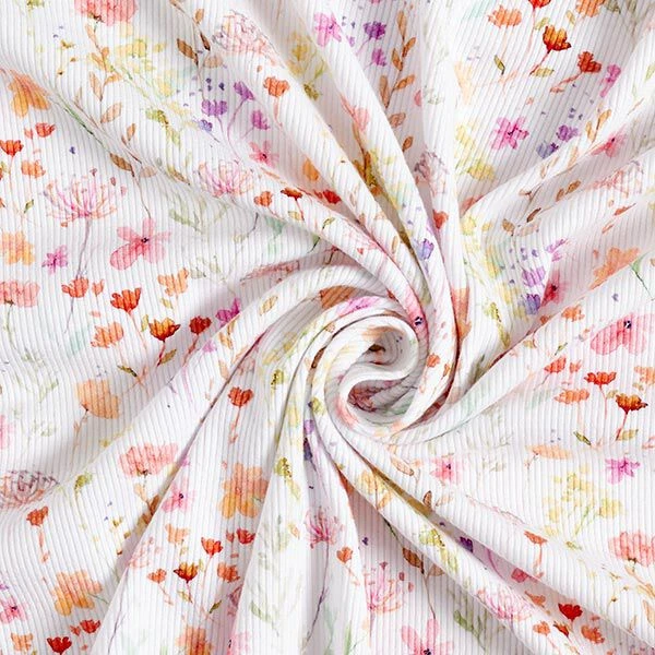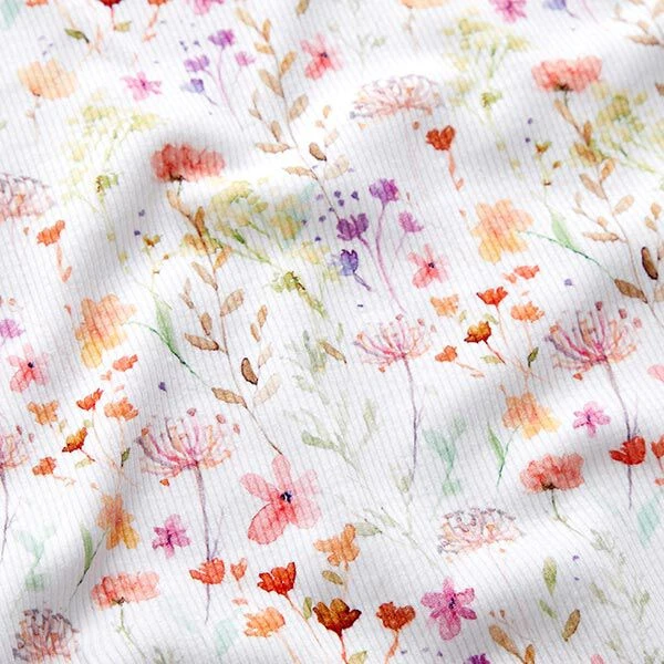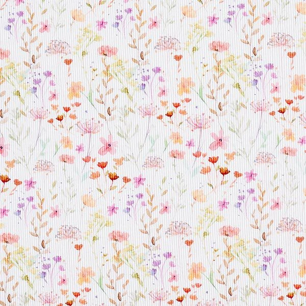 Waffle Jersey Watercolour Flower Meadow Digital Print– White
