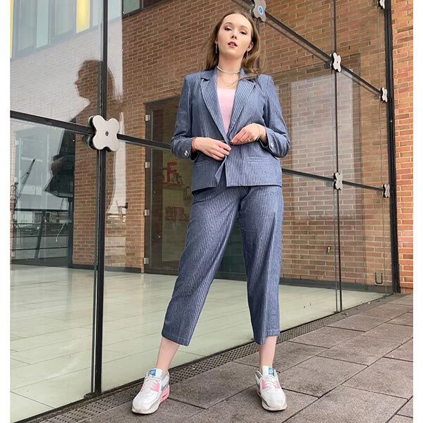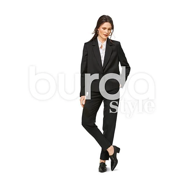 Chic partner for the office or an evening out. The casual blazer with long lapels can be made up in two length and with two kinds of pockets.