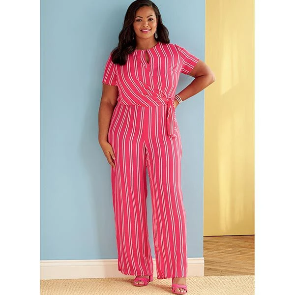 Women’s faux wrap dress & jumpsuit with sleeve variations.